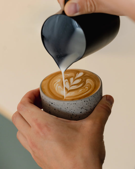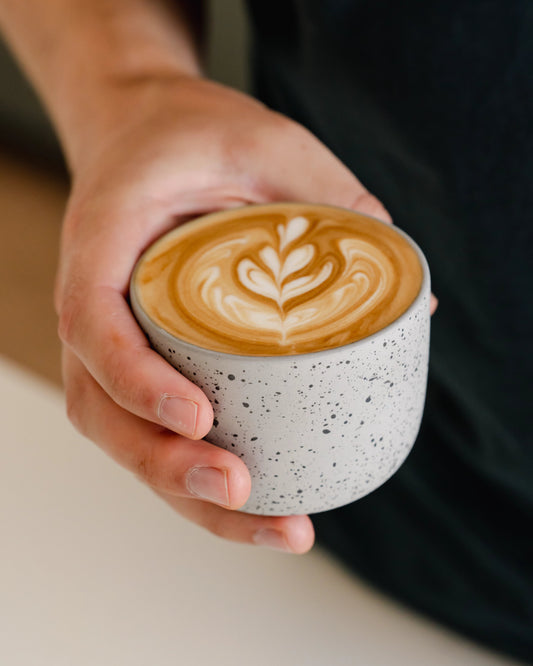 Every millimeter of this latte cup is designed with purpose. We created a latte cup for home baristas: functional, beautiful, and with the perfect ratio for a smooth latte where you can still taste your coffee!