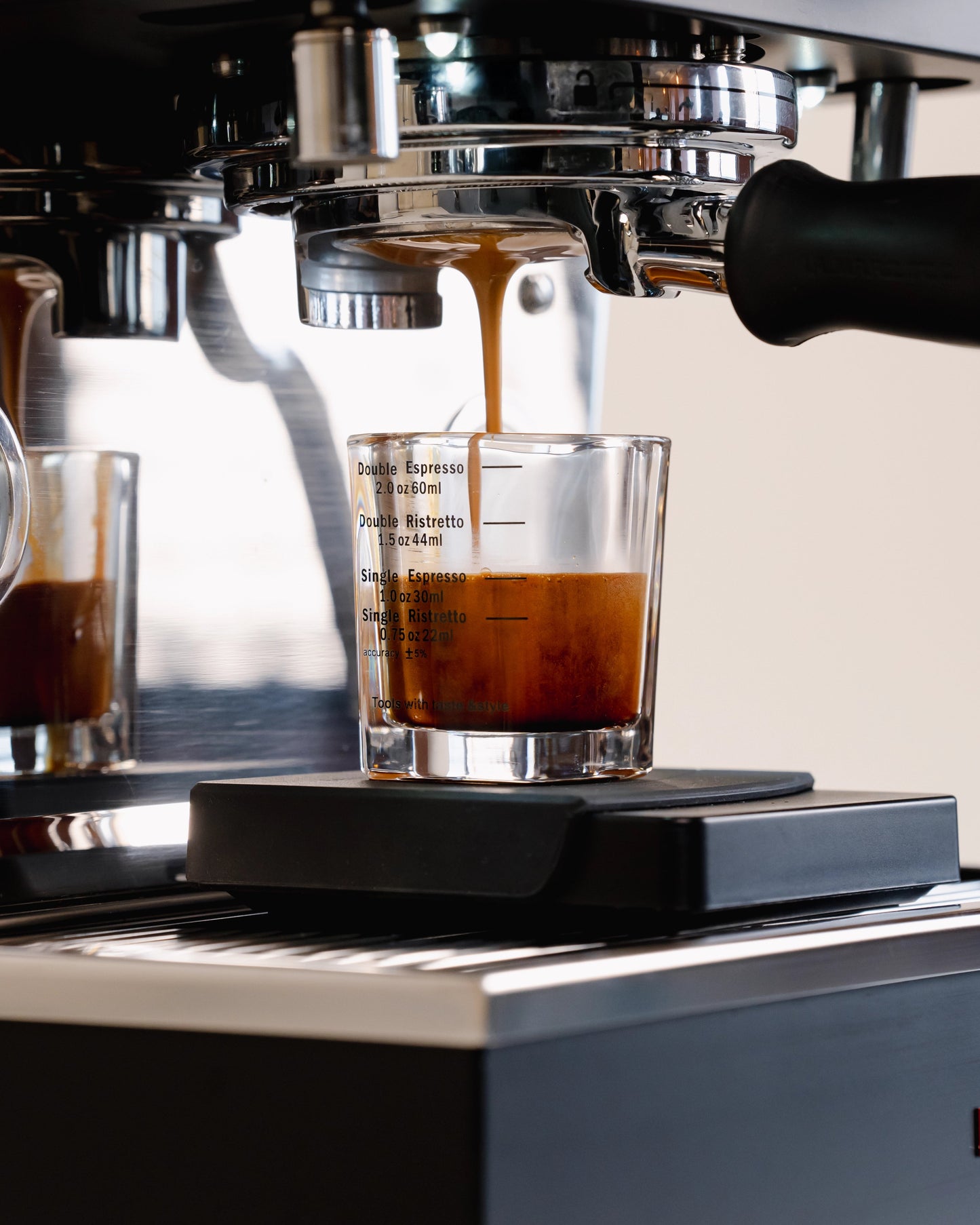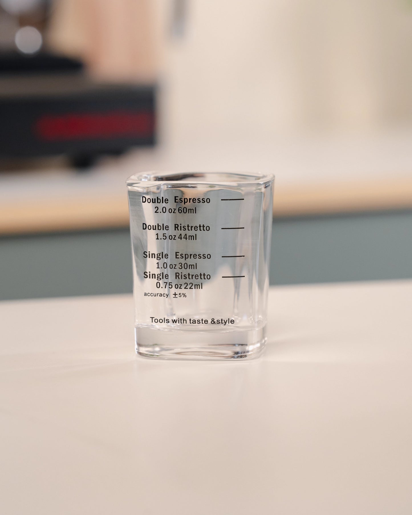 Je ziet met dit espresso glas namelijk meteen hoe het ervoor staat met je extractie. Je cremalaag is direct zichtbaar en met de maatstreepjes check je of er wel genoeg koffie door je portafilter loopt.