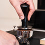 Deze tamper geeft een klik als je 12 kilo druk zet, waardoor je je nooit meer hoeft af te vragen of je net zo hard hebt getampt als alle keren daarvoor. Met 12 kilo druk zit je altijd goed, omdat goed tampen betekent dat je tussen de 10 en 15 kilo druk zet.