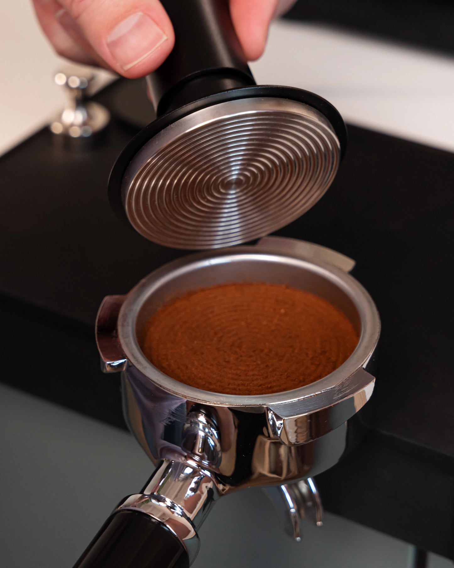 - Altijd recht tampen omdat je 'm op de randen van je portafilter zet