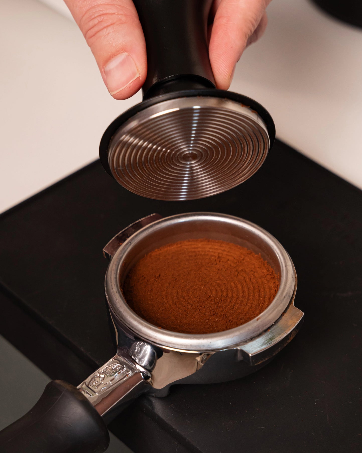 - Altijd recht tampen omdat je 'm op de randen van je portafilter zet