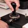 Deze tamper geeft een klik als je 12 kilo druk zet, waardoor je je nooit meer hoeft af te vragen of je net zo hard hebt getampt als alle keren daarvoor. Met 12 kilo druk zit je altijd goed, omdat goed tampen betekent dat je tussen de 10 en 15 kilo druk zet.
