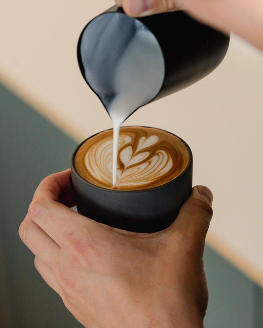 We hebben een latte kopje ontworpen voor de thuisbarista: functioneel, mooi en met de perfecte verhouding voor een zachte latte waarin je je koffie nog kunt proeven!