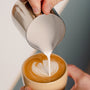 Ik ging me hierin verdiepen en realiseerde me dat ik een extra kannetje nodig had om het dikkere schuim in over te gieten. Het fijne schuim (microfoam) dat je dan overhoudt is perfect voor latte art.