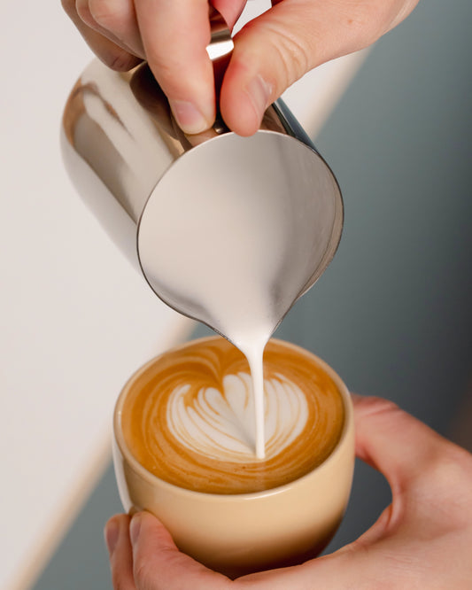 Toen ik net begon met latte art maken, gebruikte ik (Jasper) altijd maar één kannetje. Hierdoor mikte ik het dikkere melk, dat na het schuimen bovenop lag, ook zo mijn kopje in.