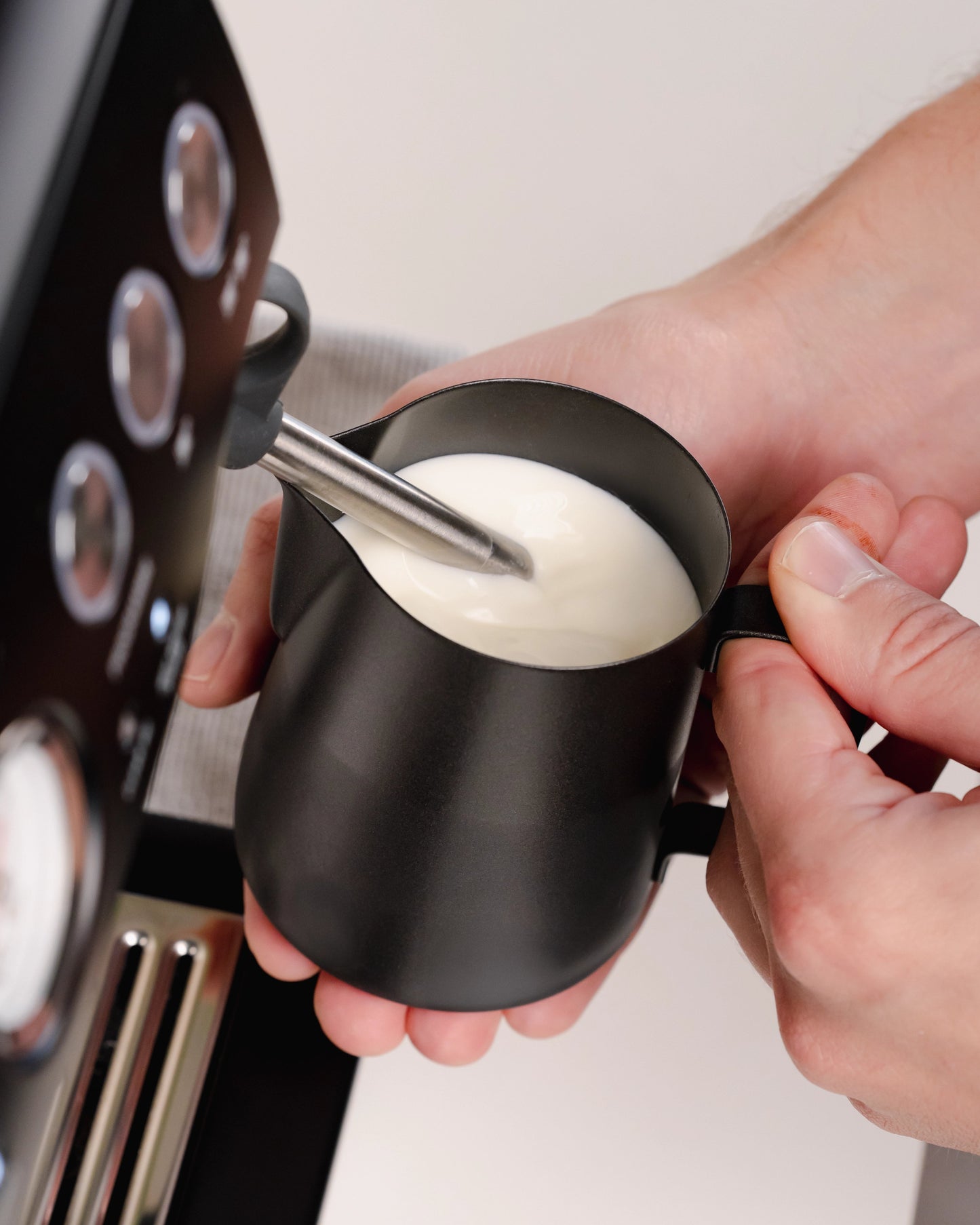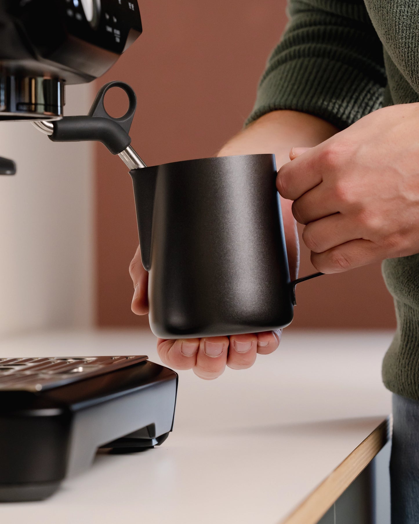 Door het smalle tuitje en de ergonomische vorm neem je controle over je latte art.