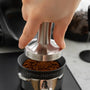Het resultaat is deze klassieke tamper waar je nu naar kijkt: met ergonomisch handvat en solide RVS tampvlak.