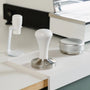 Het resultaat is deze klassieke tamper waar je nu naar kijkt: met ergonomisch handvat en solide RVS tampvlak.