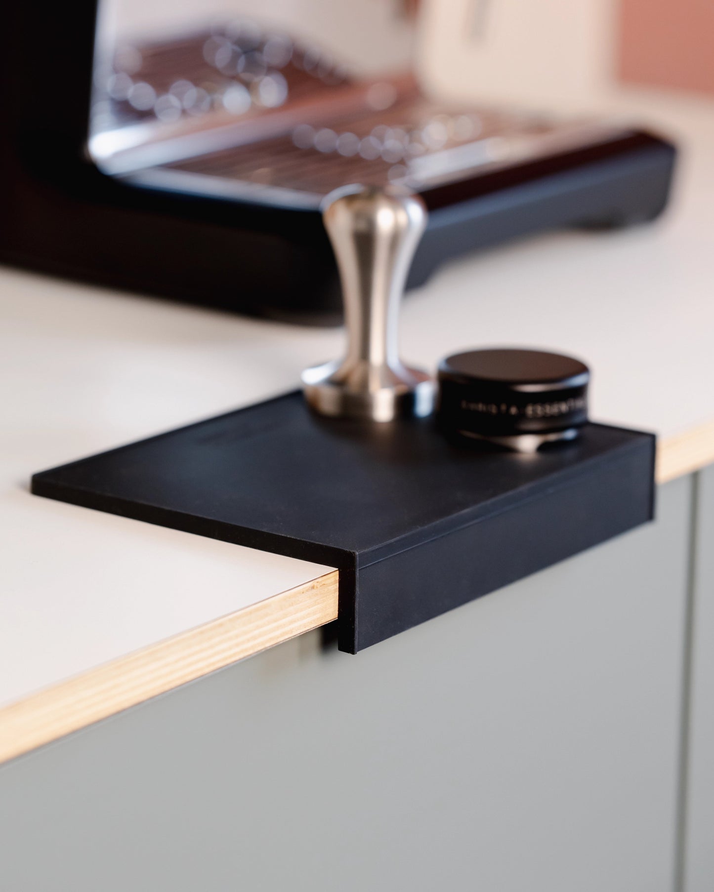 Dit moest snel anders, en dus gingen we bij Barista-Essentials op zoek naar een oplossing. We vonden veel tamping matten in de gekste vormen en met speciale ruimtes voor je tamper (alsof je geen andere barista tools hebt).