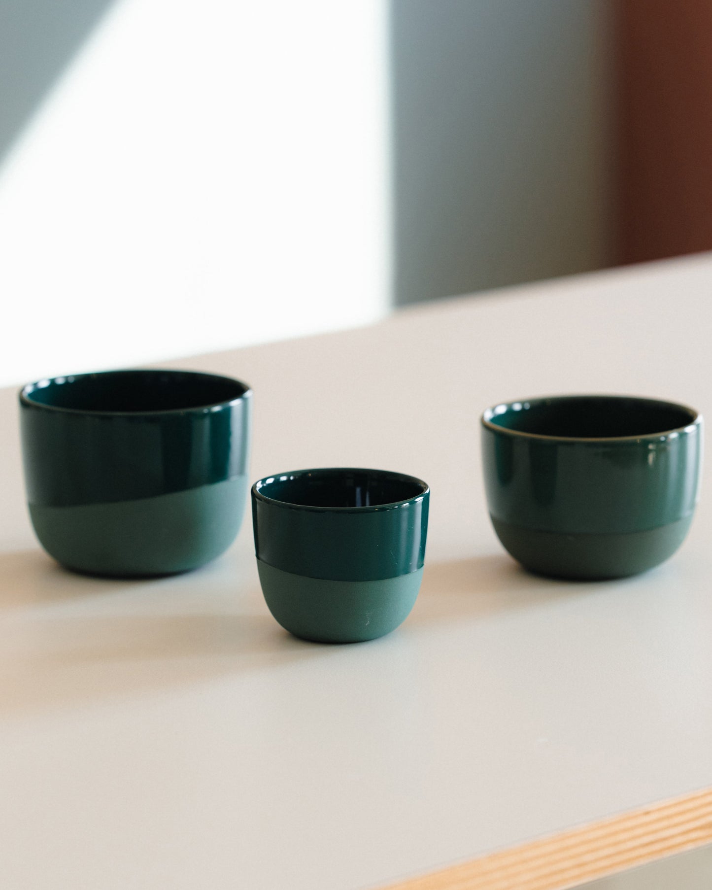 Pine Green for complexity: A green cup brings out hidden floral, spicy, and citrus nuances you might not notice otherwise. Pair it with our unique Sulawesi beans or Brazil-Ethiopia blend.