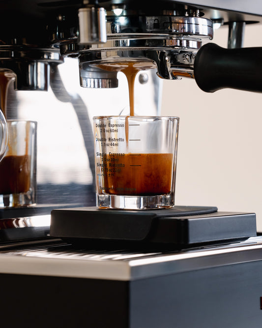 With this espresso glass, you can immediately see how your extraction is going. The crema layer is visible right away, and the measurement lines let you check whether enough coffee is running through your portafilter.