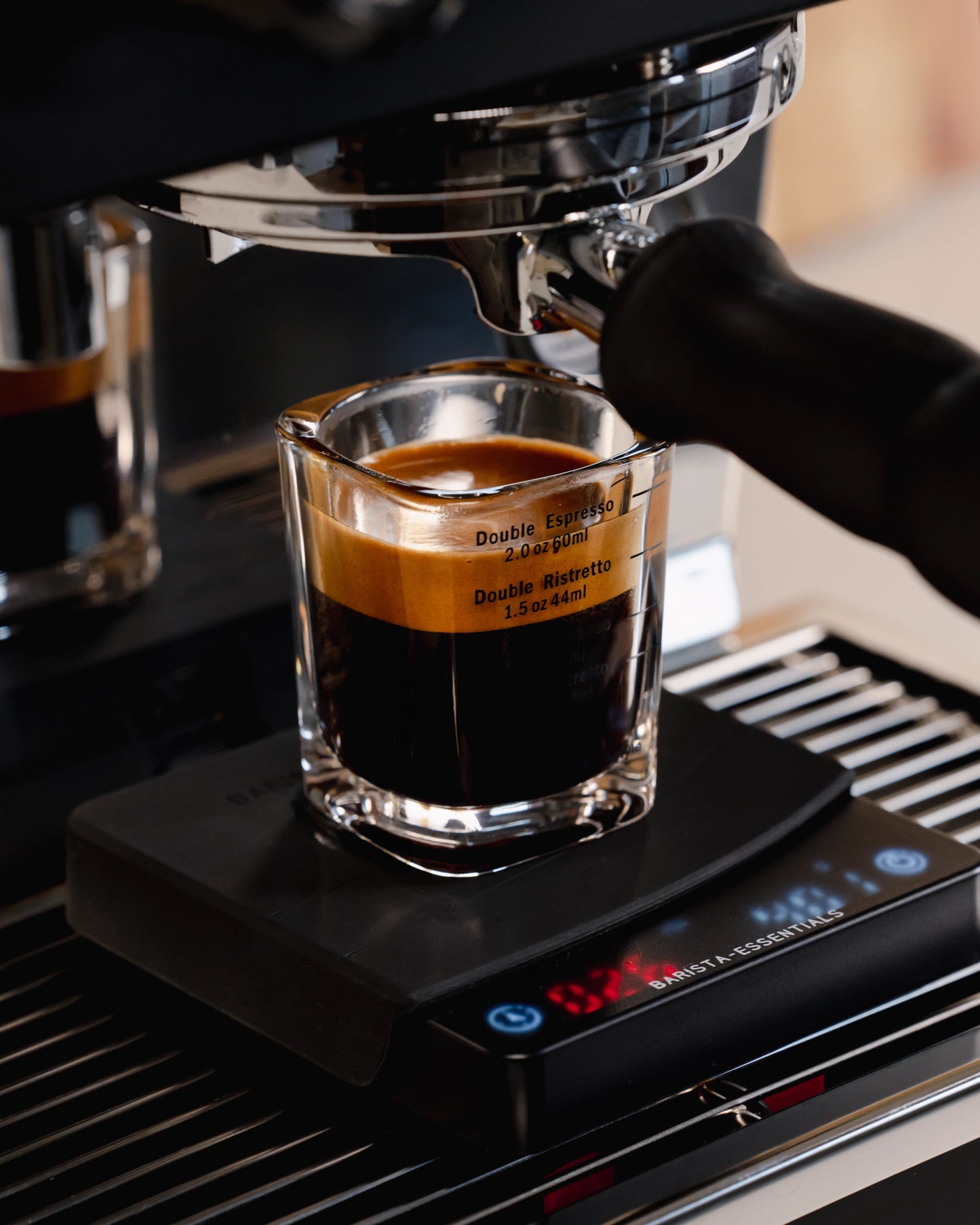 Don’t want to leave anything up to chance? Then we also recommend a coffee scale. With it, you can weigh both the ground beans and the coffee running through your portafilter down to the milligram.
