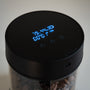 Only store whole coffee beans in this coffee canister, not ground coffee. Ground coffee can get sucked into the vacuum pump and damage it.